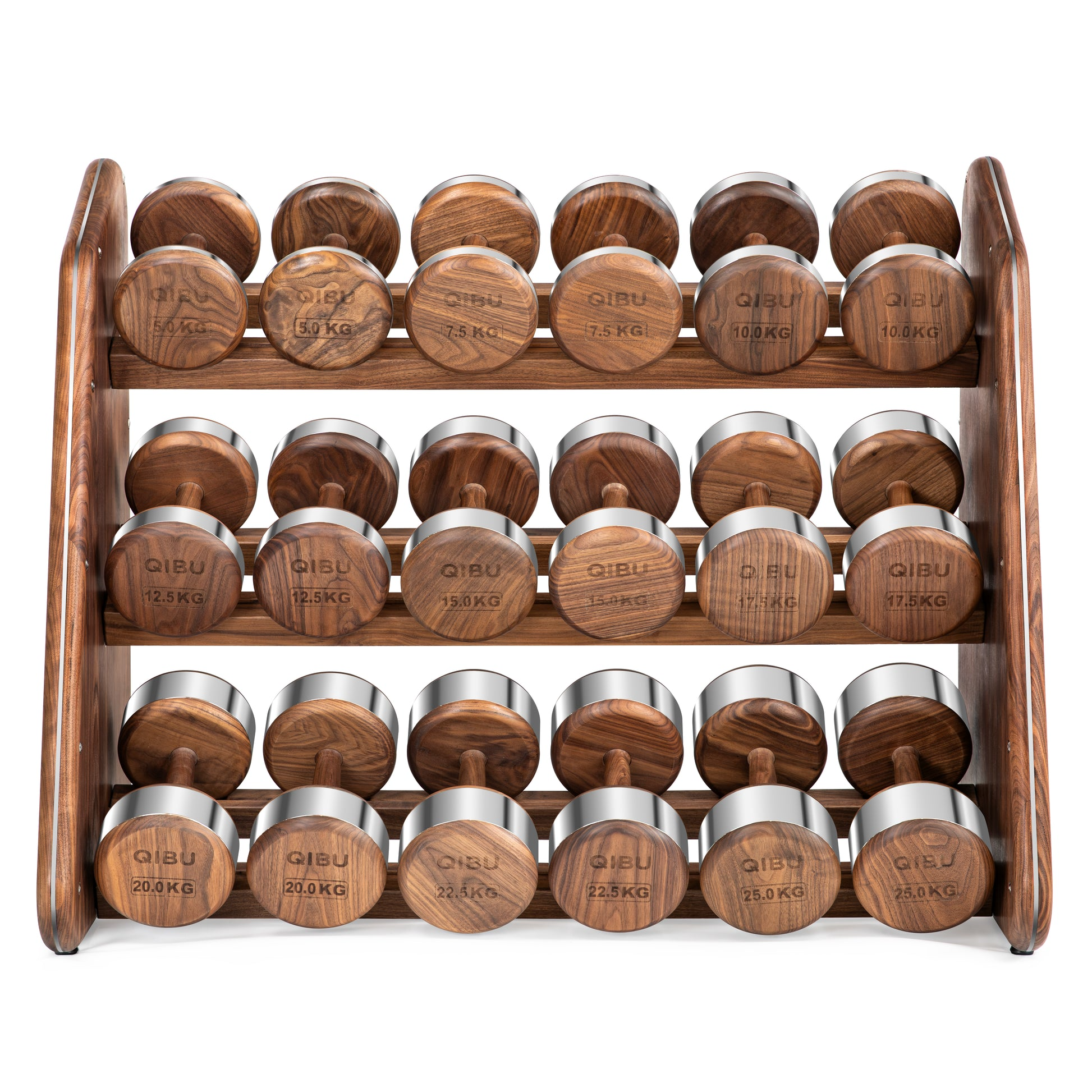Designed for those who see wellness as a daily RĪTUAL, this complete dumbbell set brings order, beauty, and intention to strength training. Each piece balances precision-engineered steel with the warmth of solid wood, all housed in a sculptural, angled rack that feels as considered as the workout itself. Functional, refined, and visually grounding, this set transforms any gym into a space of calm focus and quiet power.